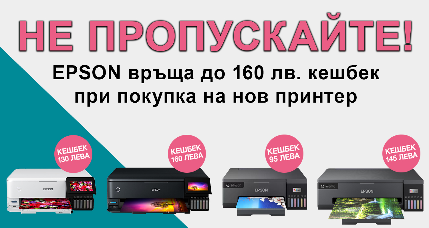 Припомняме ви, че промоцията Epson Cashback EcoTank е в пълен ход и десетки наши клиенти вече се възползваха!