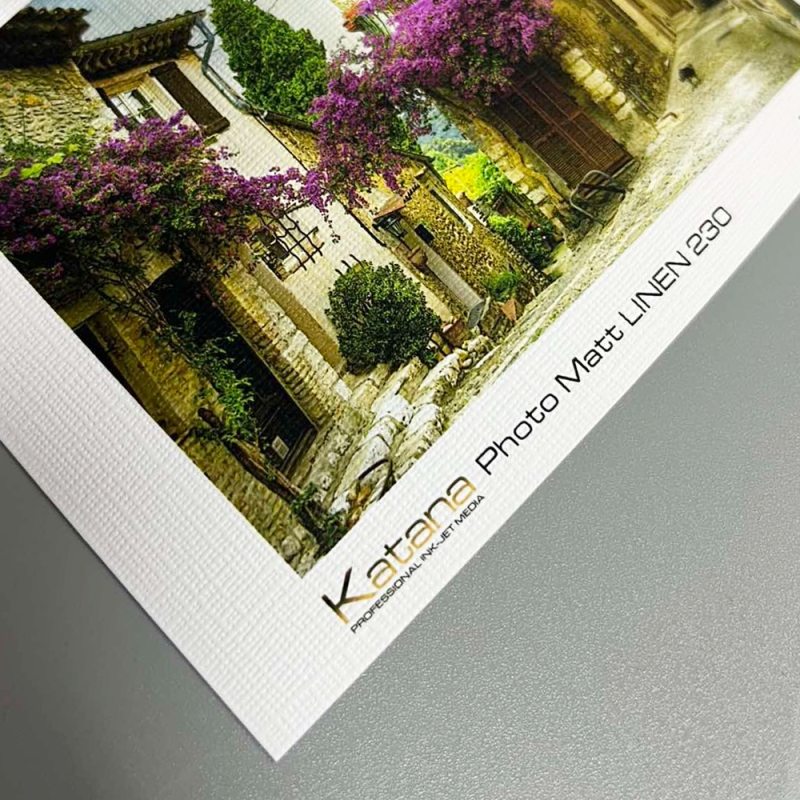 Katana Linen 230 е матова фотохартия, с едра ленена текстура, произведена в Германия, при стриктен контрол на качеството.